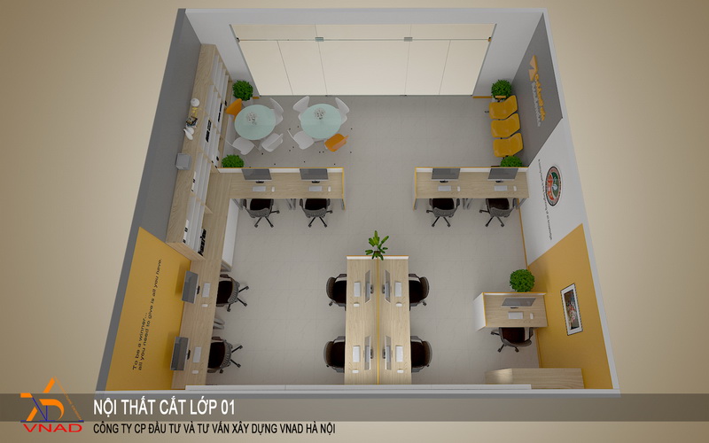 Đến với Kiến Trúc VNAD quý khách hàng sẽ có được dự án thiết kế những phòng làm việc đẹp, sang trọng, độc đáo. Tại Kiến Trúc VNAD quý khách có thể chọn cho mình một ý tưởng thiết kế đẹp và phù hợp nhất. Hãy gọi ngay cho chúng tôi để được tư vấn thích hợp với phòng làm việc của bạn. Kiến Trúc VNAD, với những kiến trúc sư, thợ lành nghề nhiều năm kinh nghiệm trong ngành, đã thiết kế thi công phòng làm việc cho rất nhiều công ty, tổ chức và các doanh nghiệp trong và ngoài nước, sẽ luôn làm cho quý khách hàng hài lòng nhất